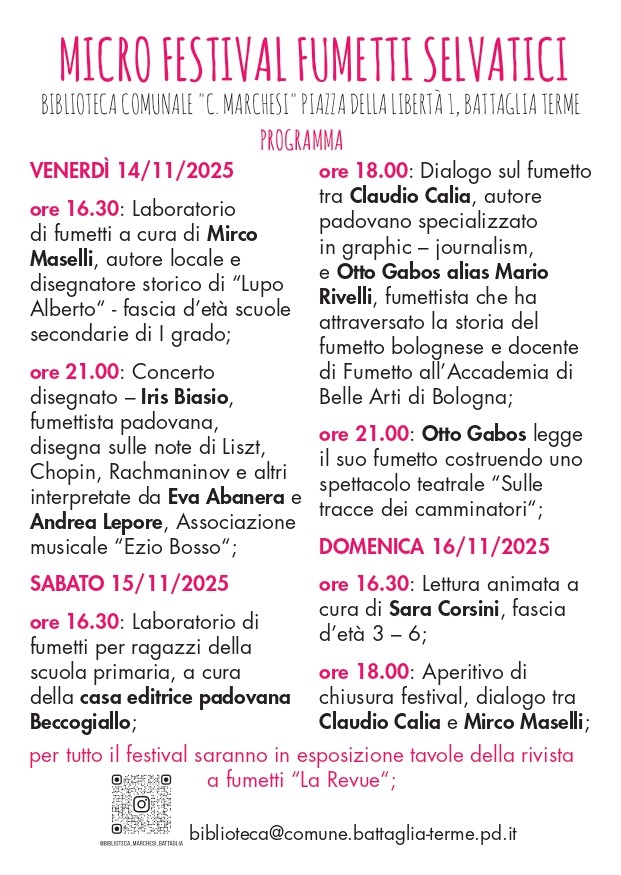 Dal 14 al 16 novembre si svolgerà la prima edizione di “Fumetti Selvatici”, micro festival del fumetto in biblioteca a Battaglia Terme.