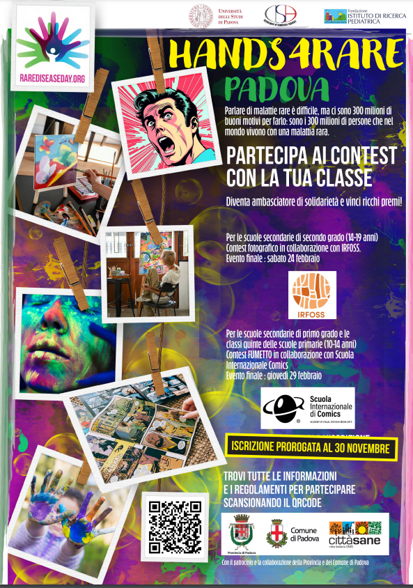 In occasione della giornata internazionale delle Malattie rare (Rare Disease Day, RDD), il 29 febbraio 2024 torna Hands4Rare. L'evento, volto a sensibilizzare tutta la popolazione su questo tema, è organizzato dal Dipartimento di Scienze Biomediche dell'Università di Padova e dalla Fondazione Città della Speranza, con la collaborazione e il patrocinio del Comune e della Provincia di Padova.
