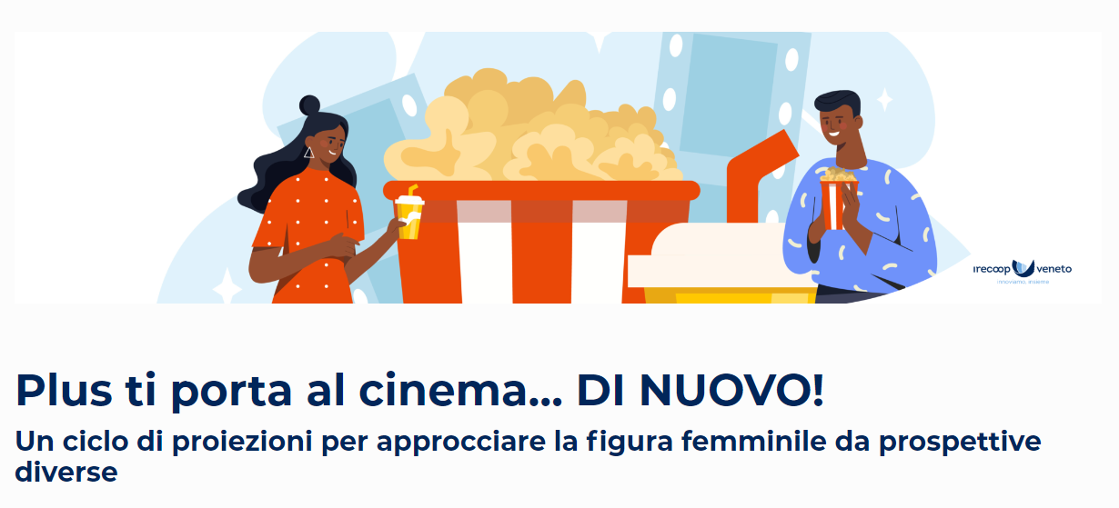 Nell'ambito del Progetto "PLUS - Più Leadership e Uguaglianza per lo Sviluppo", Irecoop Veneto ha proposto l'iniziativa PLUS ti porta al cinema…, ciclo di proiezioni e incontri, ad ingresso gratuito, per approcciare la figura femminile da prospettive diverse e per stimolare una riflessione su temi legati al femminile: violenza di genere, ostacoli ai percorsi di vita e di carriera, ritratti intimi di donne coraggiose.